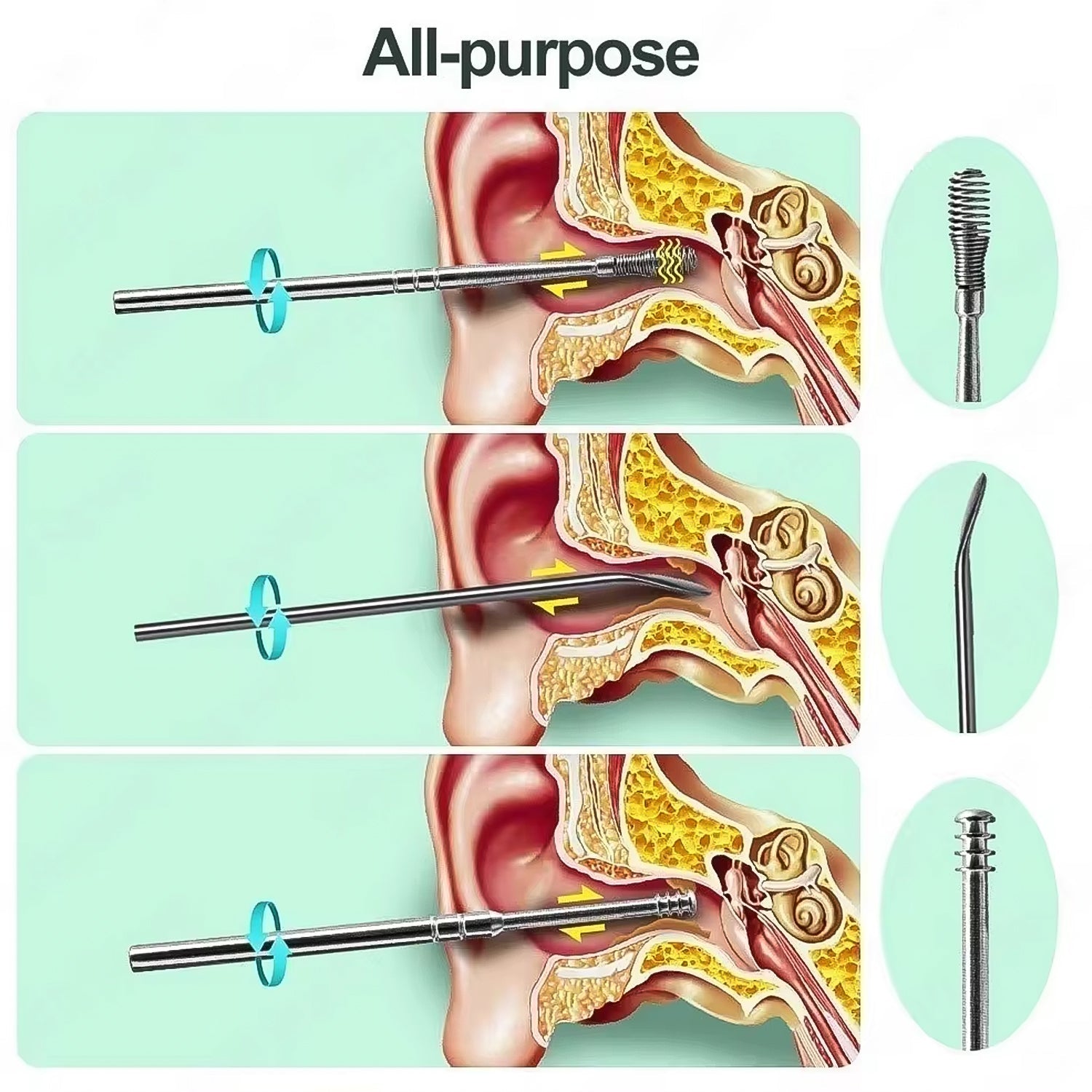 High Quality: All ear picks are made of high quality stainless steel, durable and anti-rust, easy to clean and sterilize. These spring ear wax cleaner tool sets are extra durable in use and not easy to distort.