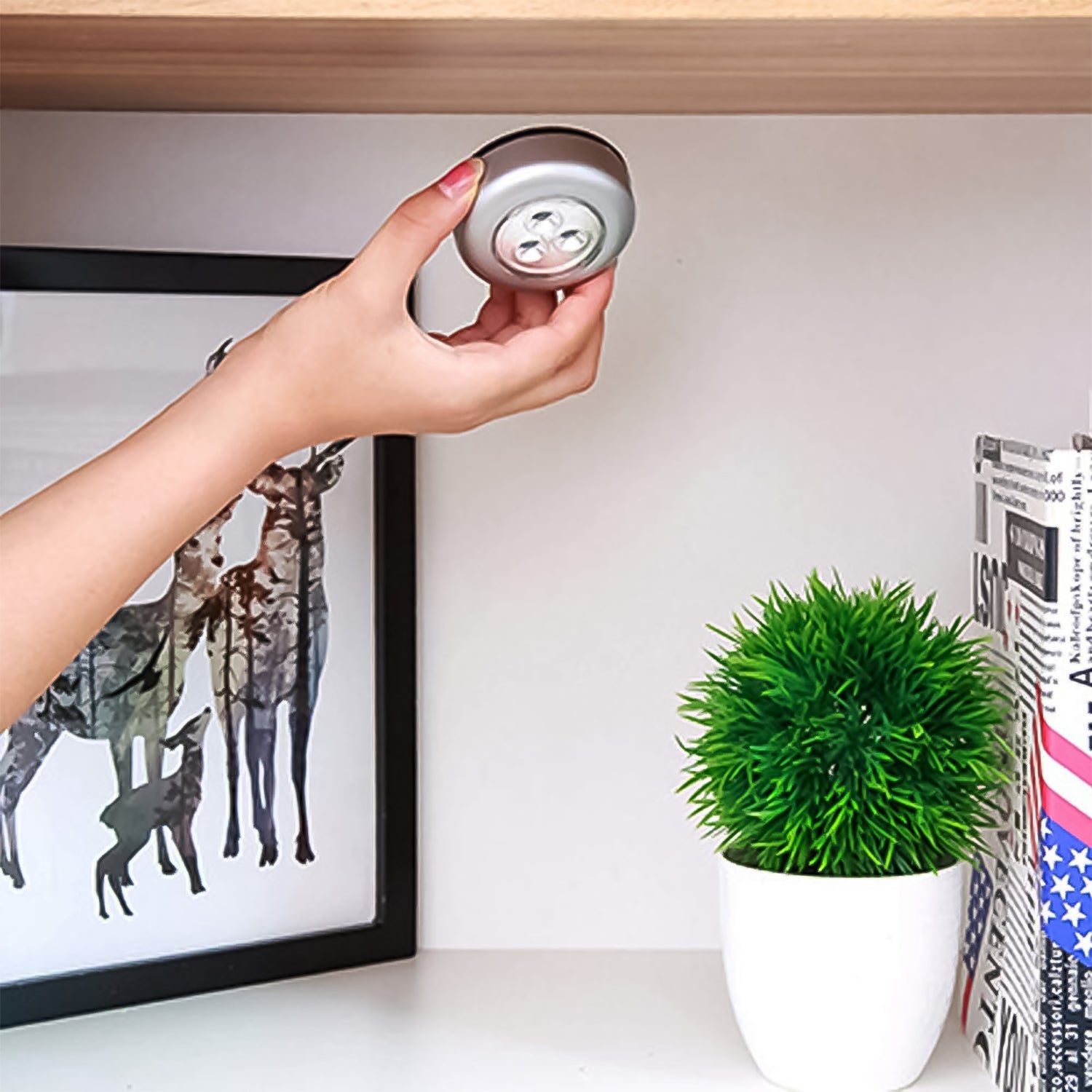 LED puck light, under cabinet light, battery-operated LED, stick-on light, spot light, push light,closet lighting, kitchen under-shelf light,wardrobe light, portable lighting solution,round LED light