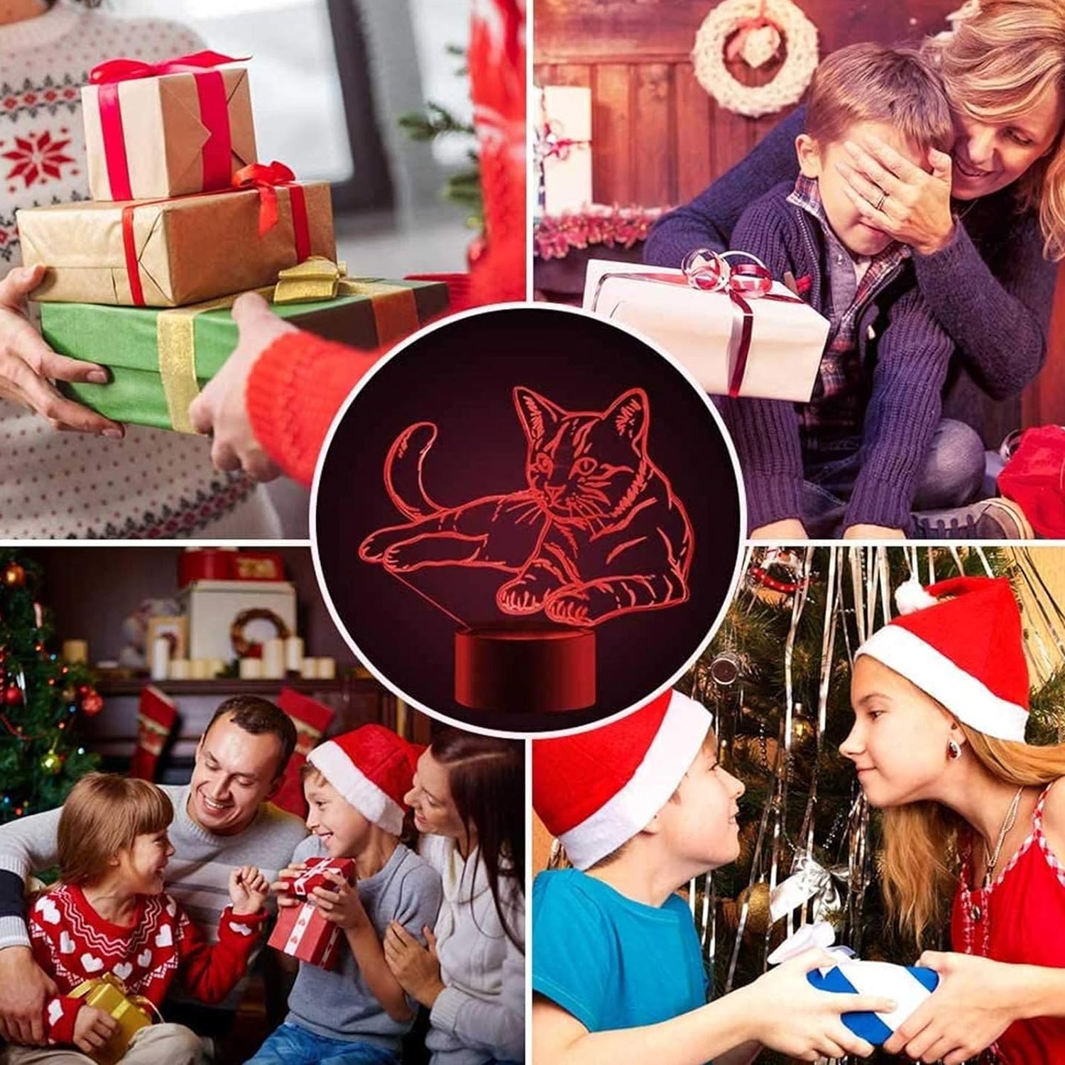 Adorable Cat Design: Engraved acrylic plate projects a glowing 3D illusion of a cat.